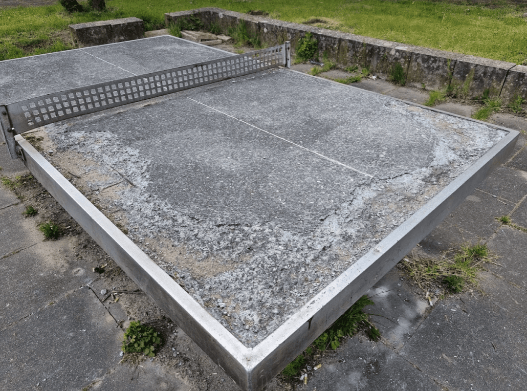 Mit den Kindern war ich dann auch in meiner alten „Hood“ auf einem …. Kann man das noch Spielplatz nennen? Ein Klettergerüst und zwei Tischtennisplatten.