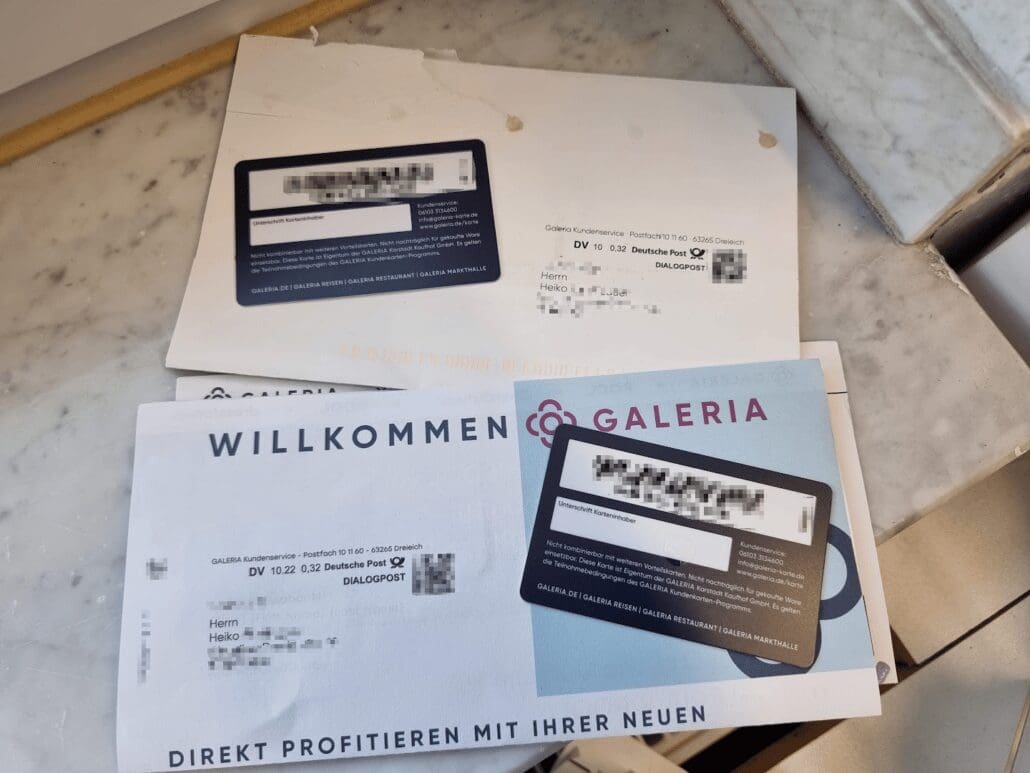 Gestern habe ich per Post auf die Arbeit, an genau diese Anschrift zwei Galeria Kundenkarten bekommen.