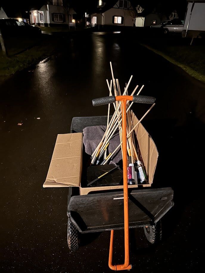 Ich habe mir im Park einen Bollerwagen ausgeliehen und bin kurz vor 0 Uhr in Ruhe aus dem Park gewandert und habe mein Feuerwerk aufgebaut.