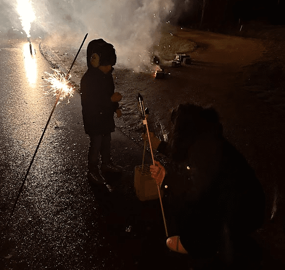 Fürs Feuerwerk konnte ich meine beiden Kinder auch begeistern. Dieses Jahr war ihr zweites richtiges Silvester. Vergangenes Jahr war es ihnen zu laut. Für dieses Jahr habe ich Ohrschützer besorgt.