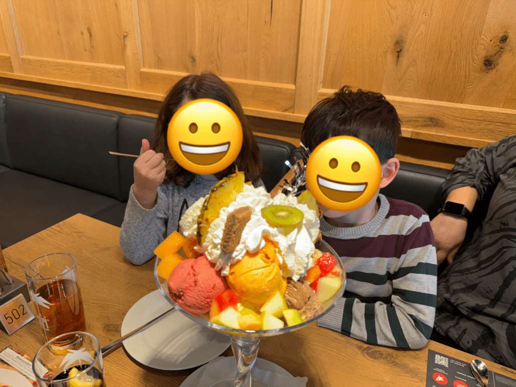 Also teilten wir uns zu viert diesen Eisbecher. Danach ging es 2 Stunden ins Pumuckl Land. Das ist wirklich schön und eine ganz andere Liga als der Indoor-Spielplatz vom IKEA.