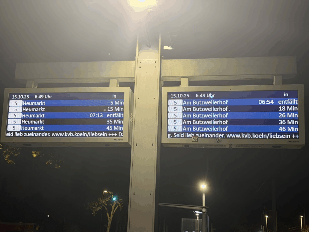 Anfang der Woche ist mir aufgefallen, dass unsere Köln‑Verspätungsbetriebe an der Anzeigetafel nun auch anzeigen, wenn eine geplante Bahnfahrt ausfällt, statt diese kommentarlos zu streichen.