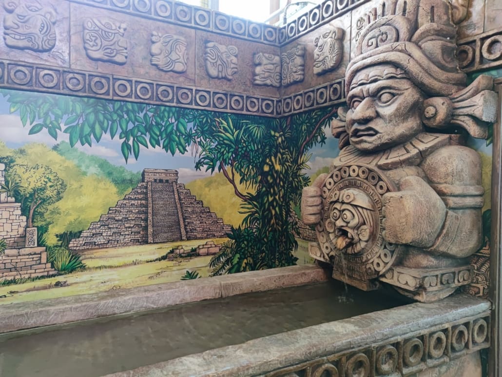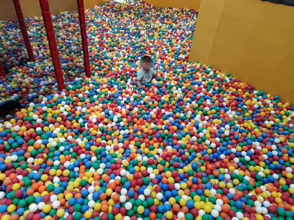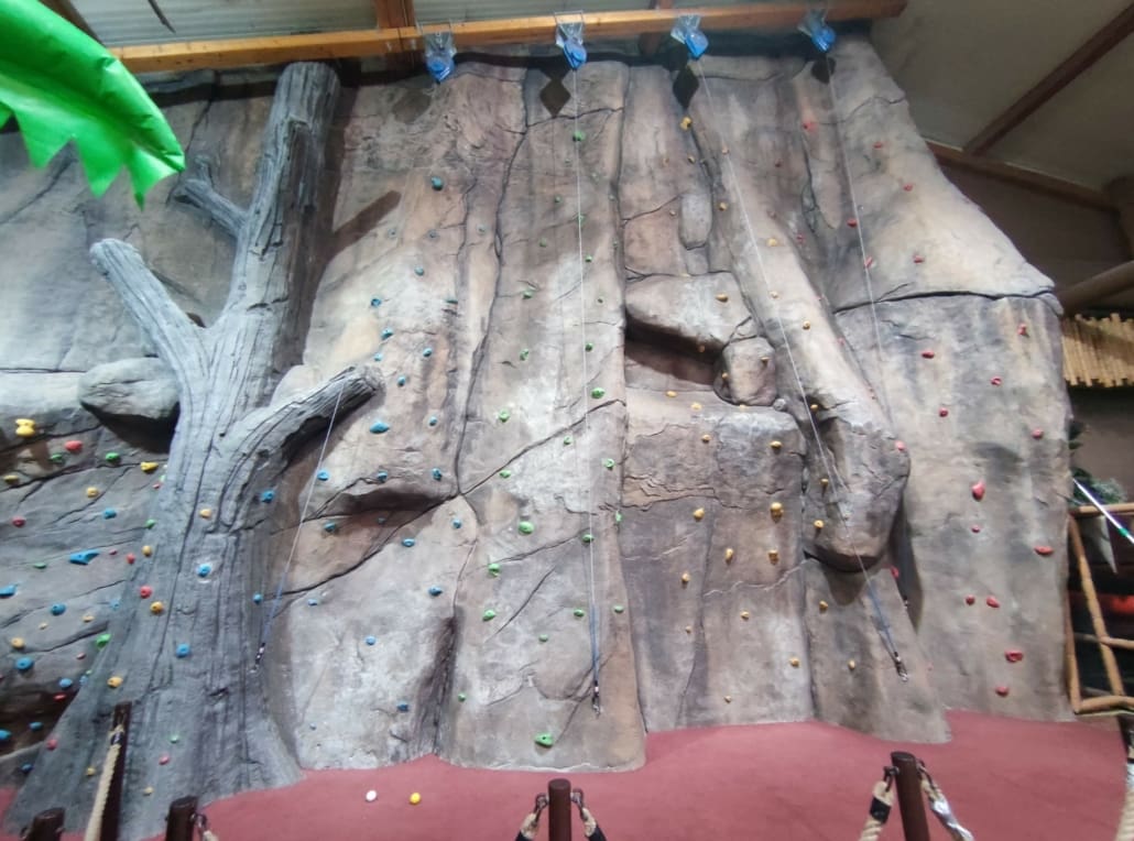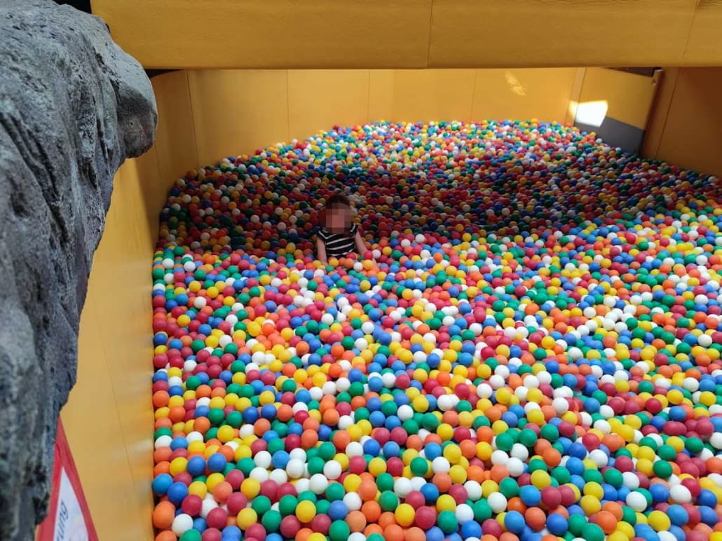 Erst muss man durch einen Maya Tempel, landet dann in einem riesigen Indoorspielplatz mit Bällebad, Kletterpark, Laser Game, Goldsieben, Rutschen, Kletterwand und vielem mehr.