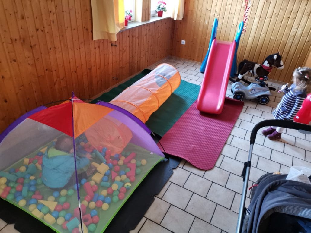 Meine Frau hatte eine kleine Spieleecke aufgebaut.