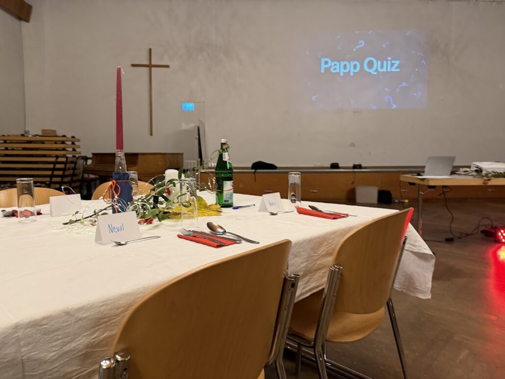 Die Jugendlichen, welche das Organisieren, kochen für die Familien. Zwischen jeder Quizrunde gibt es ein Essen. Und so hatten wir an dem Abend ein 4‑Gänge-Menü.