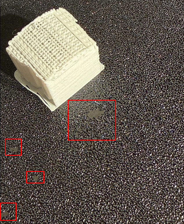 Nun habe ich zwar keine Blasen mehr, aber dafür „klebt“ das Zeug so fest, das es die Beschichtung der PEI Platte mit ablöst.