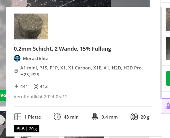 Dazu wird noch Filament benötigt. Ich selbst verwende das von Bambu, Sunlu und Jayo. Das Kilo (eine Rolle) liegt je nach Aktion und Menge zwischen 7 und 15 €. Mit anderem habe ich oft Probleme gehabt.