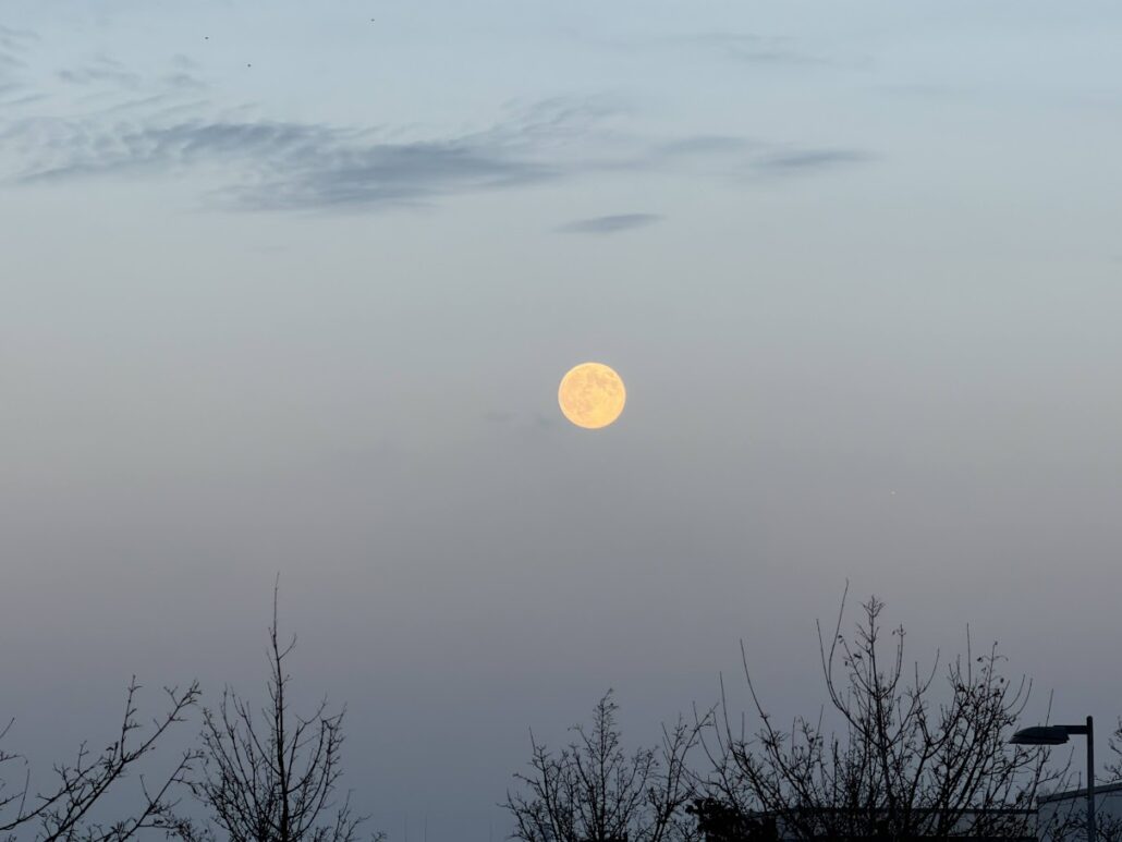 Es war noch hell draußen, ich war auf dem Weg nach Hause, da sah ich den wirklich schönen Mond.