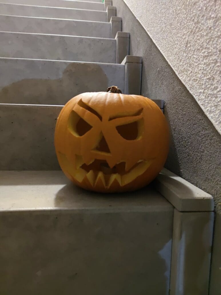 Ganz liebe Idee. Die Kinder hatten viel Spass dabei. Der Kürbis steht jetzt an unserer Treppe, bis er hin ist 😉