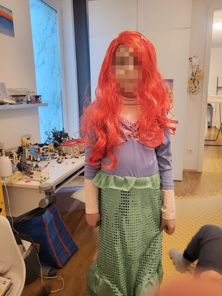 Aber die Kinder haben in der Schule gefeiert. Sohnemann ging es Minecraft Figur und Tochter als Meerjungfrau.