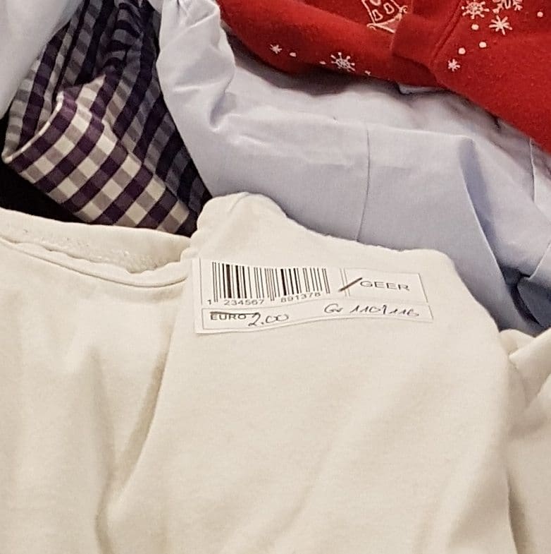 Die Veranstalter verkaufen es dann. Auf allen Sachen war ein Preis, ein Nameskürzel und ein Barcode angebracht.