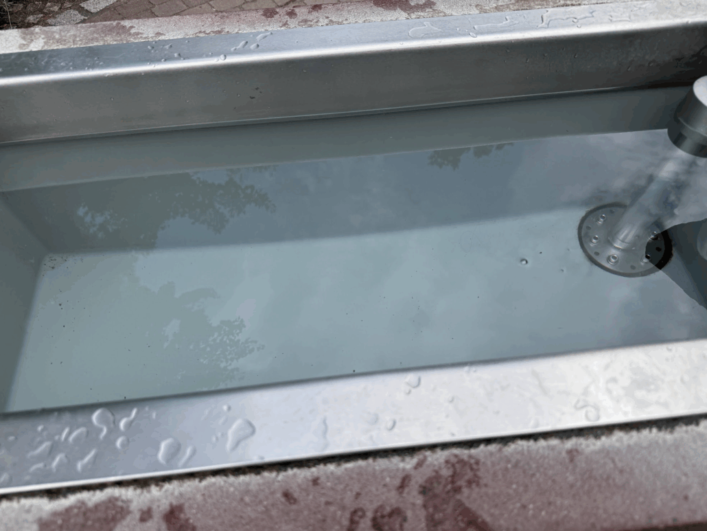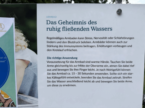Etwas, was es wohl oft in Kurgebieten gibt, sind Kneippbecken. Kaltwasserbecken, in denen man seine Füße und Arme steckt.