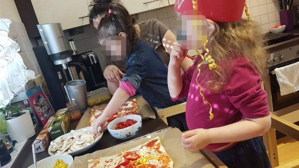 Die Kinder konnten zusammen spielen, dann wurden Bilder gemalt und am Abend durften sie Ihre eigene Pizza belegen.