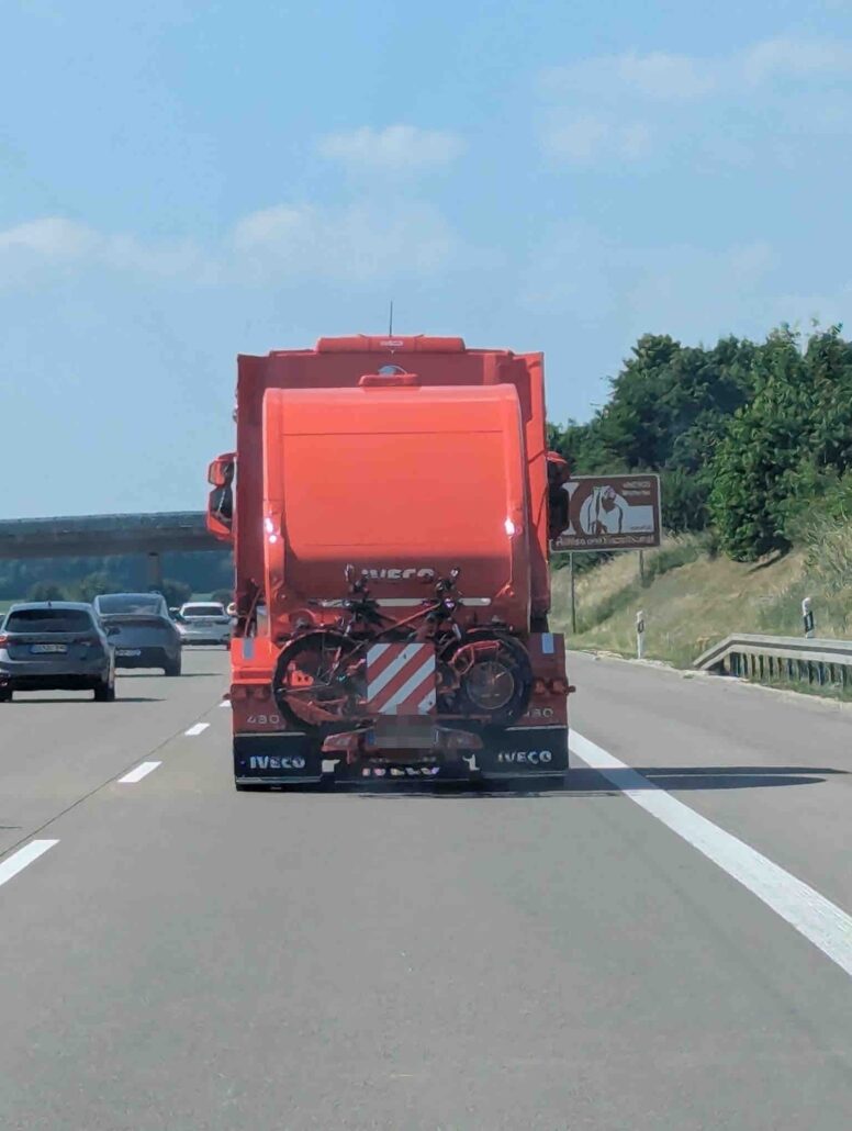 Auf dem Weg nach Günzburg haben wir dieses Wohnmobil mit Lkw gesehen.