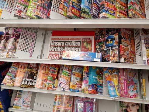 Ich habe es dann der Kassiererin gegeben, damit diese es entsorgt bevor es noch die ganzen Zeitungen versaut.