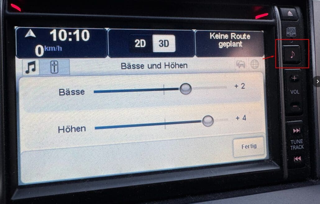 Vor rund 7,5 Jahren haben wir unser Auto gekauft. Am Wochenende habe ich am Autoradio den Bass runterdrehen wollen. Dafür muss man auf die „Notentaste“ rechts drücken.