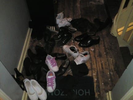 an den schreienden/schimpfenden/fluchenden Mitbewohnern, die versuchen euren Treppenabsatz gefahrlos zu ueberwinden?