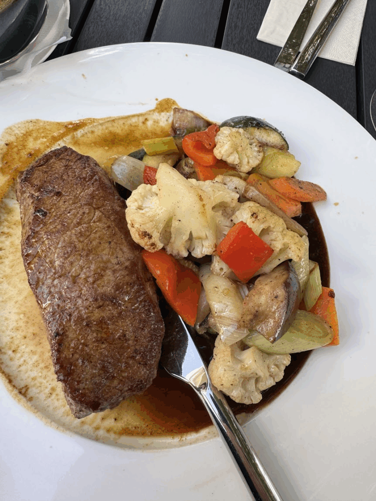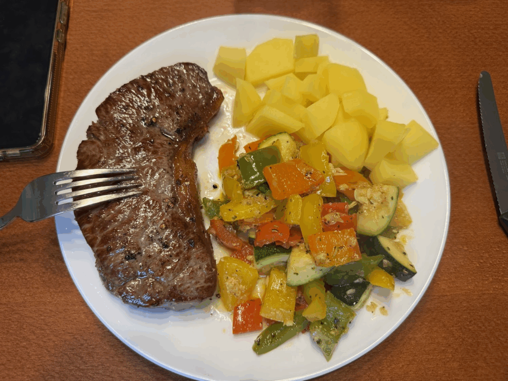 Nicht optimal, aber dennoch abgenommen. 🤣 Weil eben nicht 500 g Steak und 400 g Kartoffeln. Und das funktioniert erstaunlicherweise bis jetzt echt gut.