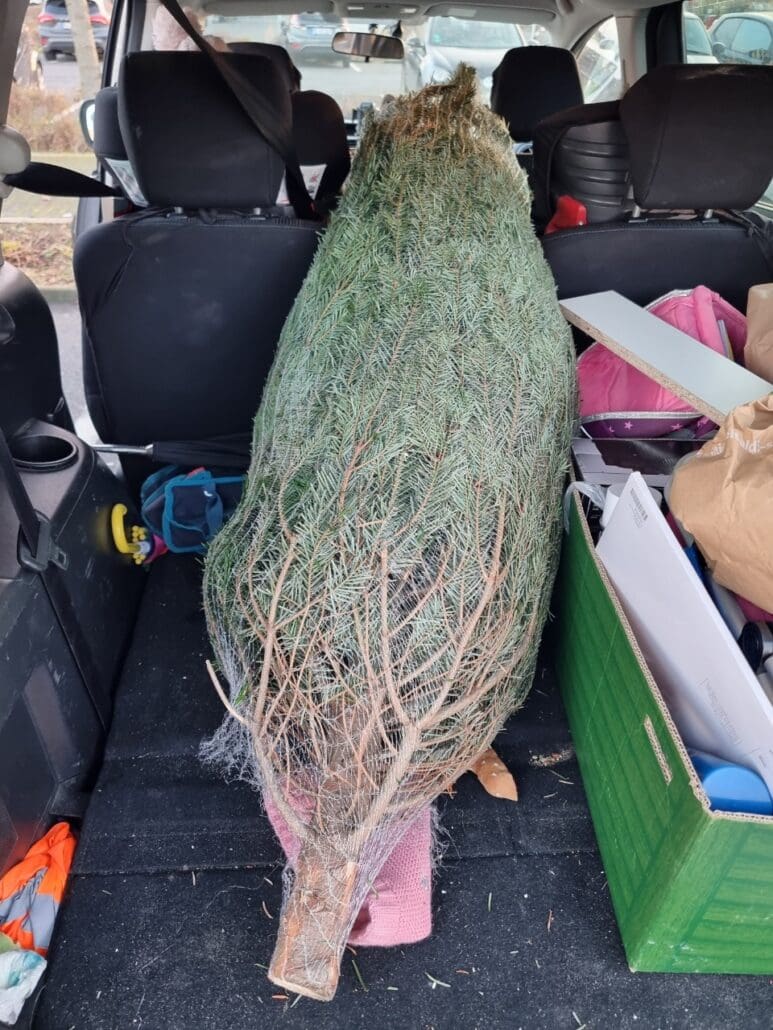 Dieses Jahr hat der Baum den Spielbereich unserer Tochter belegt. Und daher wollte meine Frau den so schnell wie möglich diesen wieder los werden.