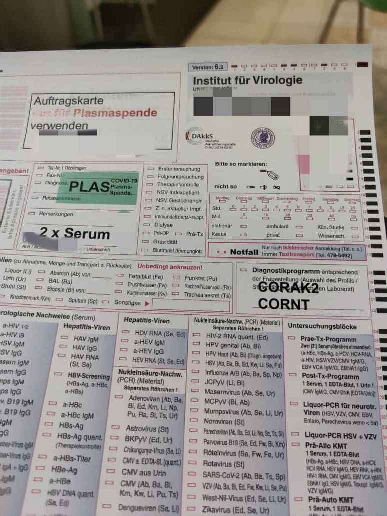 Da fragte man mich, ob man mein Blutplasma auf Antikörper prüfen darf.