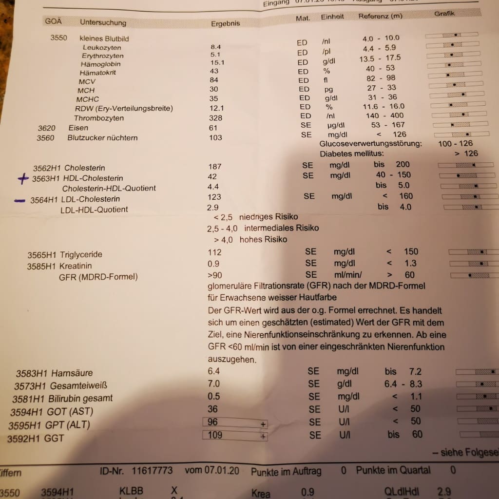 Ich hatte am Dienstag meinen Quartalshausarzttermin. Dort haben wir meine Blutwerte und weitere Vorgehensweisen besprochen.