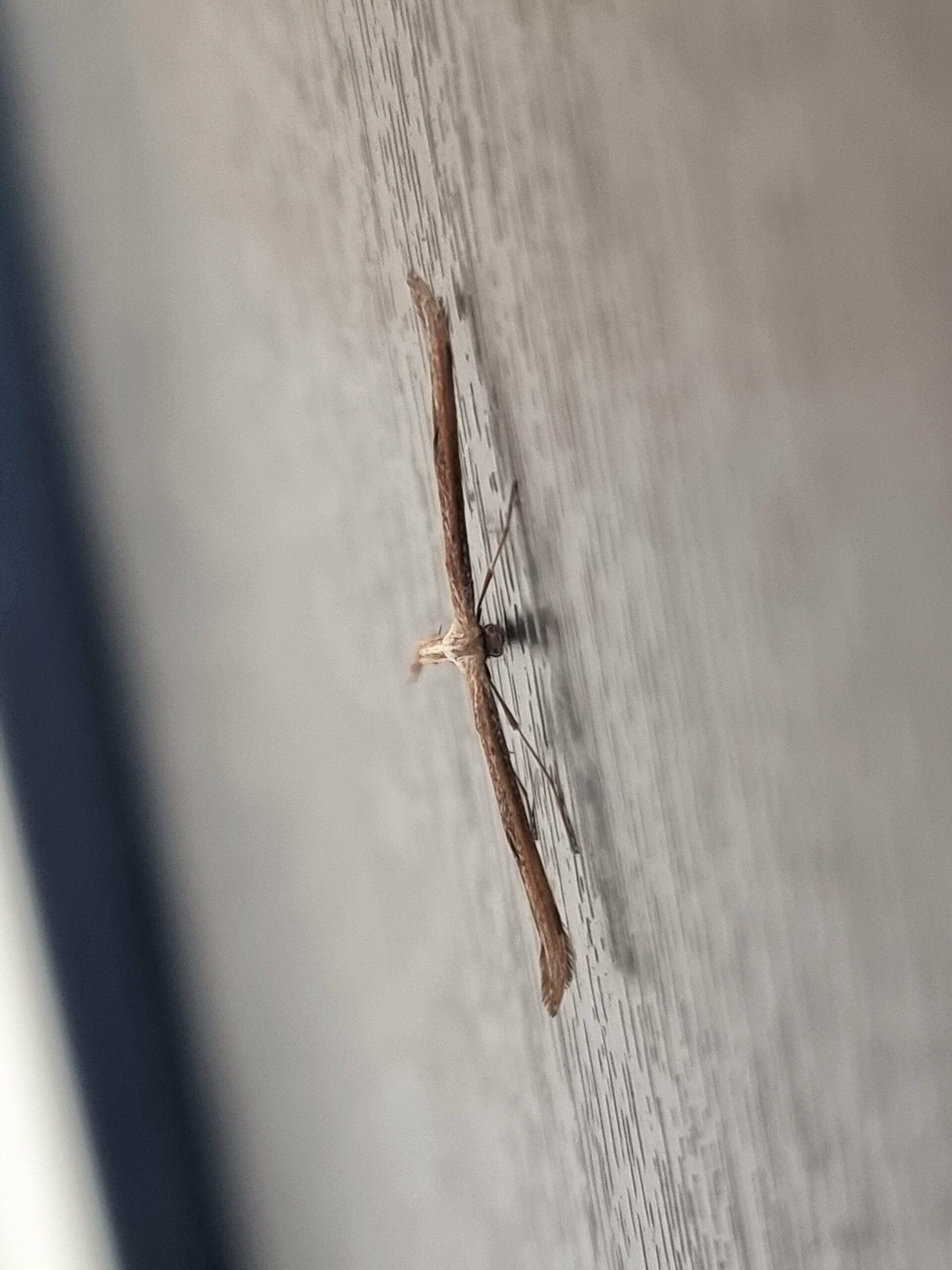 Ich mag ja Google Lens. Damit fand ich raus, dass es sich um eine Mottenart names Emmelina monodactyla handelt.