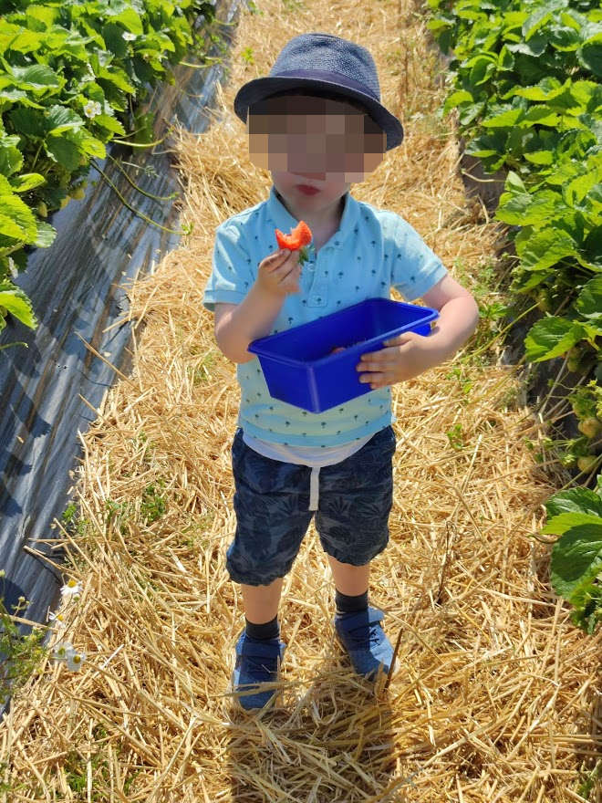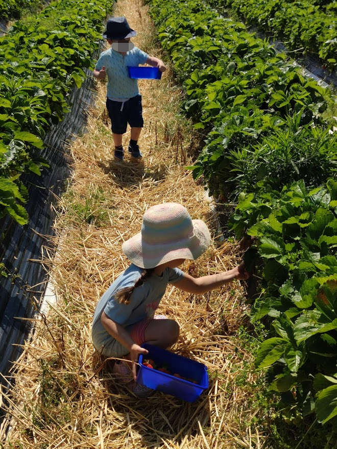 Auf dem Rückweg vom Tierpark haben wir durch Zufall ein Erdbeerfeld zum selber pflücken gesehen.