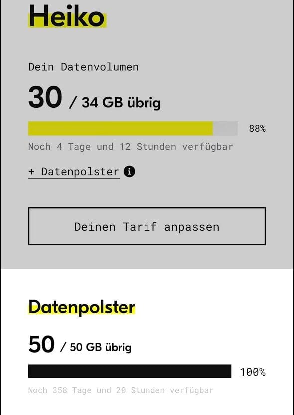 Ich weiß gar nicht, wohin damit. Letztes Jahr im Sommer haben bei 5 Stunden Autofahrt die Kinder mit ihren Tablets über meinen Tarif gestreamt und ich kam immer noch nicht an mein Volumen ran.