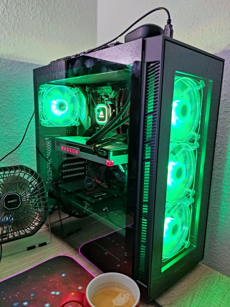 Da ein Hitzeproblem in der Ecke bei dem PC für mich absehbar war, hatte ich mir eine Wasserkühlung geholt und brauchte auch infolgedessen ein neues Gehäuse.
