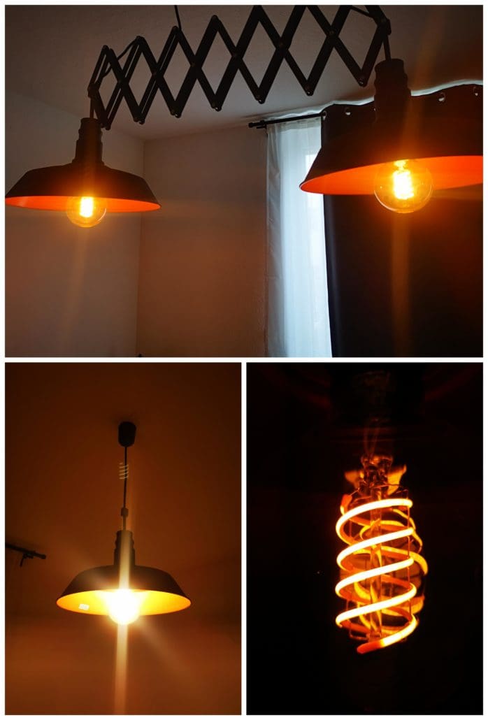 Im Essbereich und in der Wohnecke haben wir uns für Retro Lampen entschieden.