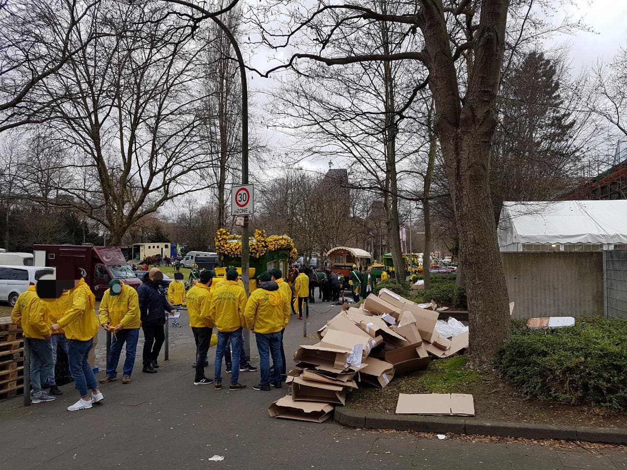 Na ja. Es war ruhig und friedlich. Es war trocken und stürmig. Da Unwetter angekündigt waren, blieben viele Jecken zu hause und wir hatten wenig zu tun. Ich sah bald mehr Polizei und Ordnungsamt als Jecken.