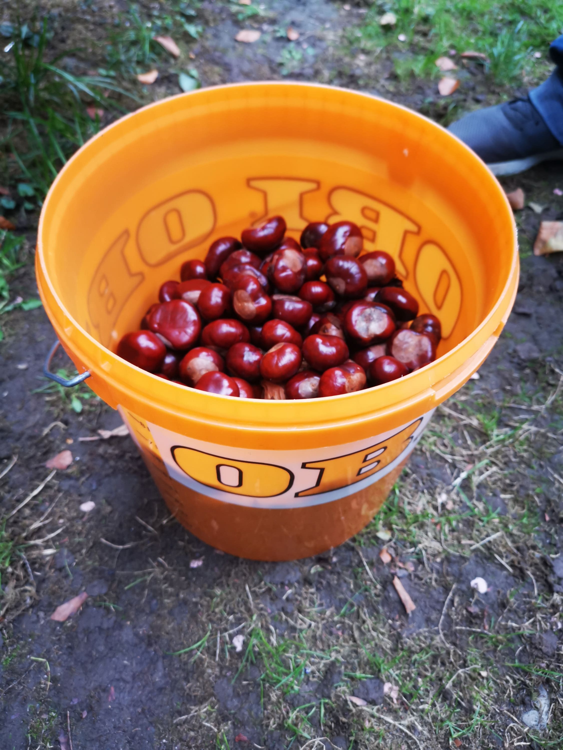 Und nun haben wir den Eimer voll. Einen Kastanienbohrer habe ich auch schon organisiert. Jetzt fehlt nur noch die Zeit dafür 😉
