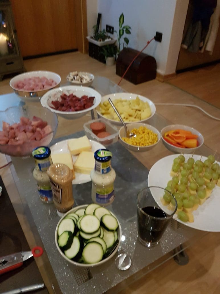 Eigentlich war auch Fondue geplant, aber das funktionierte nicht so wie wir wollten.