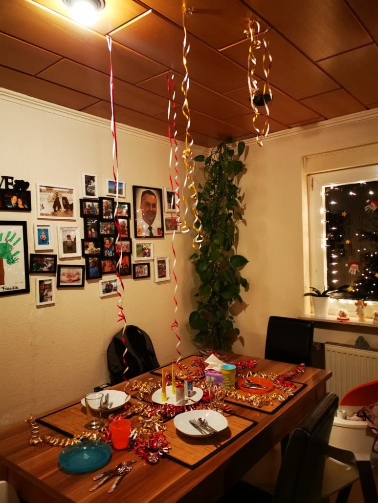 Bedingt wohl durch den grippalen Infekt, sind die Kinder erst um 9 Uhr aufgewacht. Ich selbst bin schon um 8 Uhr zum Bäcker, die reservierte Neujahrsbrezel holen.