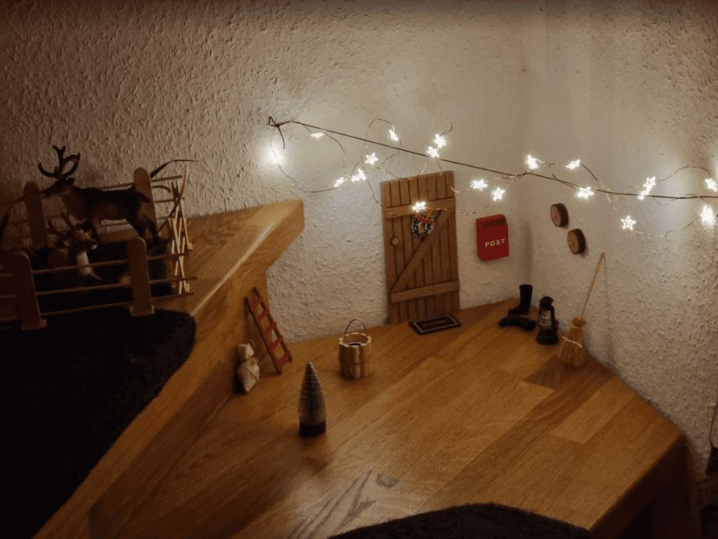 In der Nacht hat der Wichtel Leopold sich eine Beleuchtung angebracht.