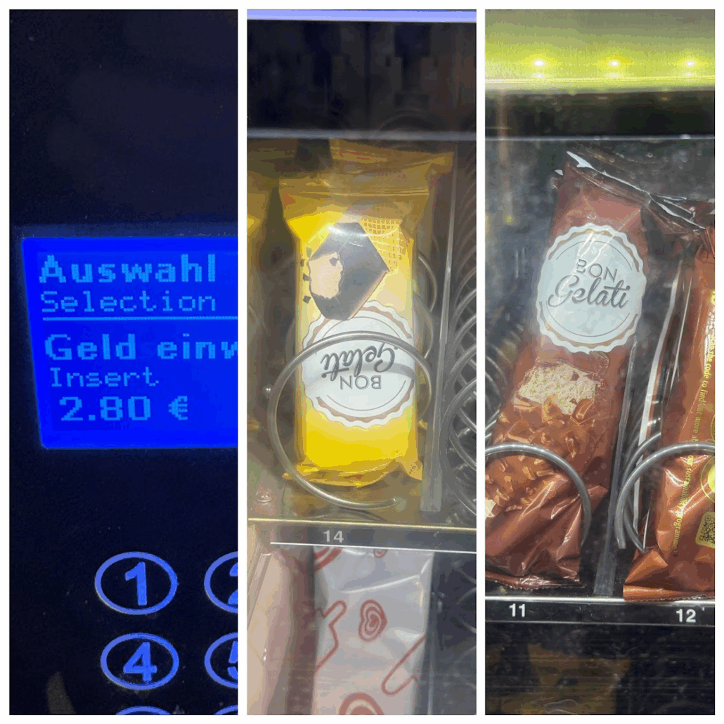 Da gab es keinen Kiosk, sondern einen Automatenraum. Der hatte wiederum auch Eis im Sortiment. Aber 2,80 € für ein Lidl-Eis fand ich schon sehr interessant.