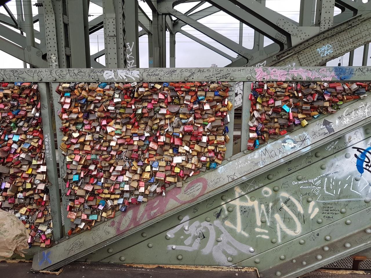 Heute habe ich sie von ihrer München Reise am Deutzer Bahnhof abgeholt. Da ich unser Auto auf Grund des Veedelszug in Deutz am Dom geparkt hatte, mussten wir über diese Brücke.