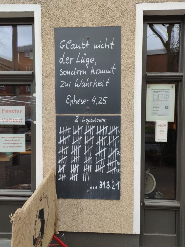 Dieses Foto ist diesen Sonntag entstanden. Vor einem Christlichen lokalen Café, bei mir im Ort.