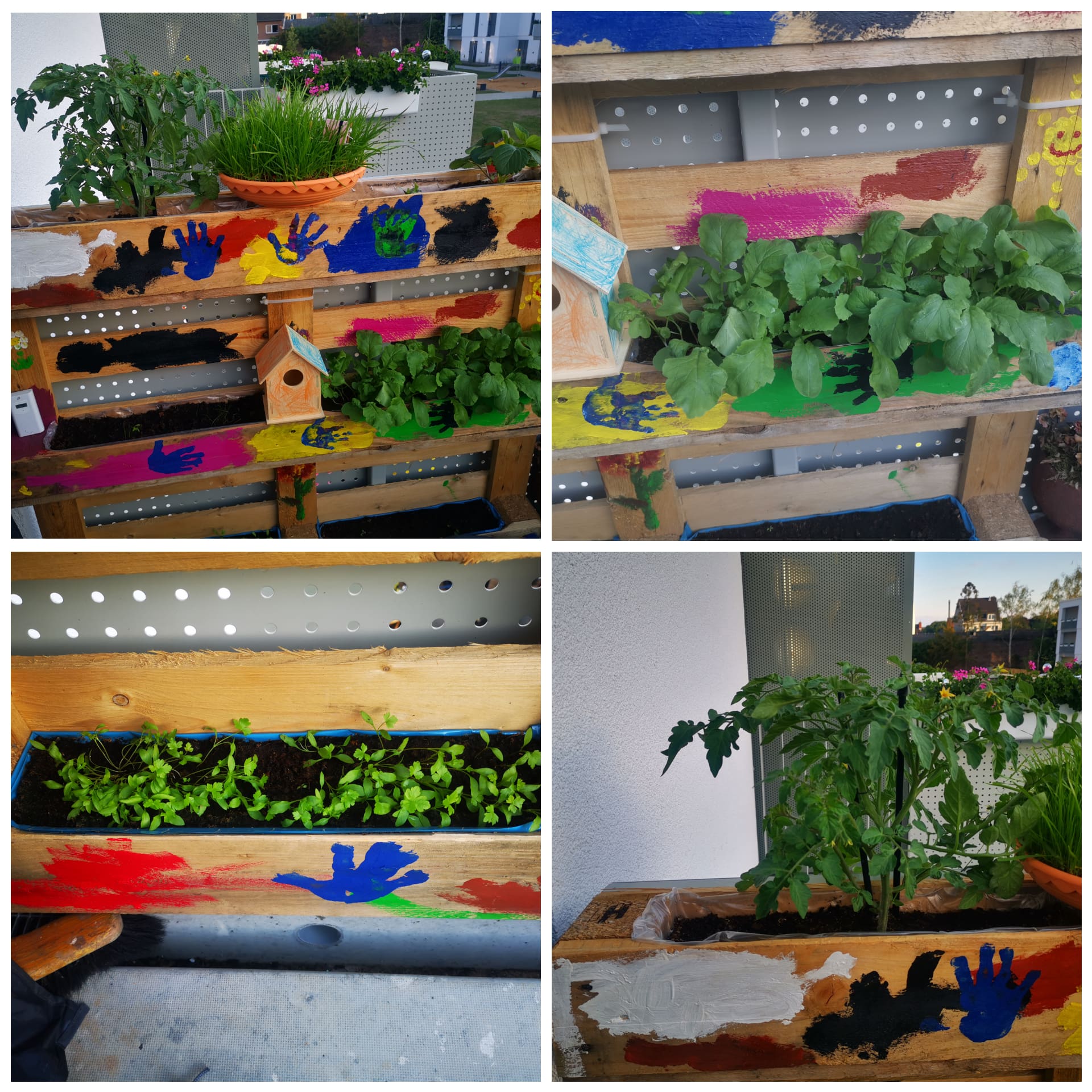Das Paletten Hochbeet, welches meine Frau mit den Kindern angepflanzt hat, wächst ganz fleißig.
