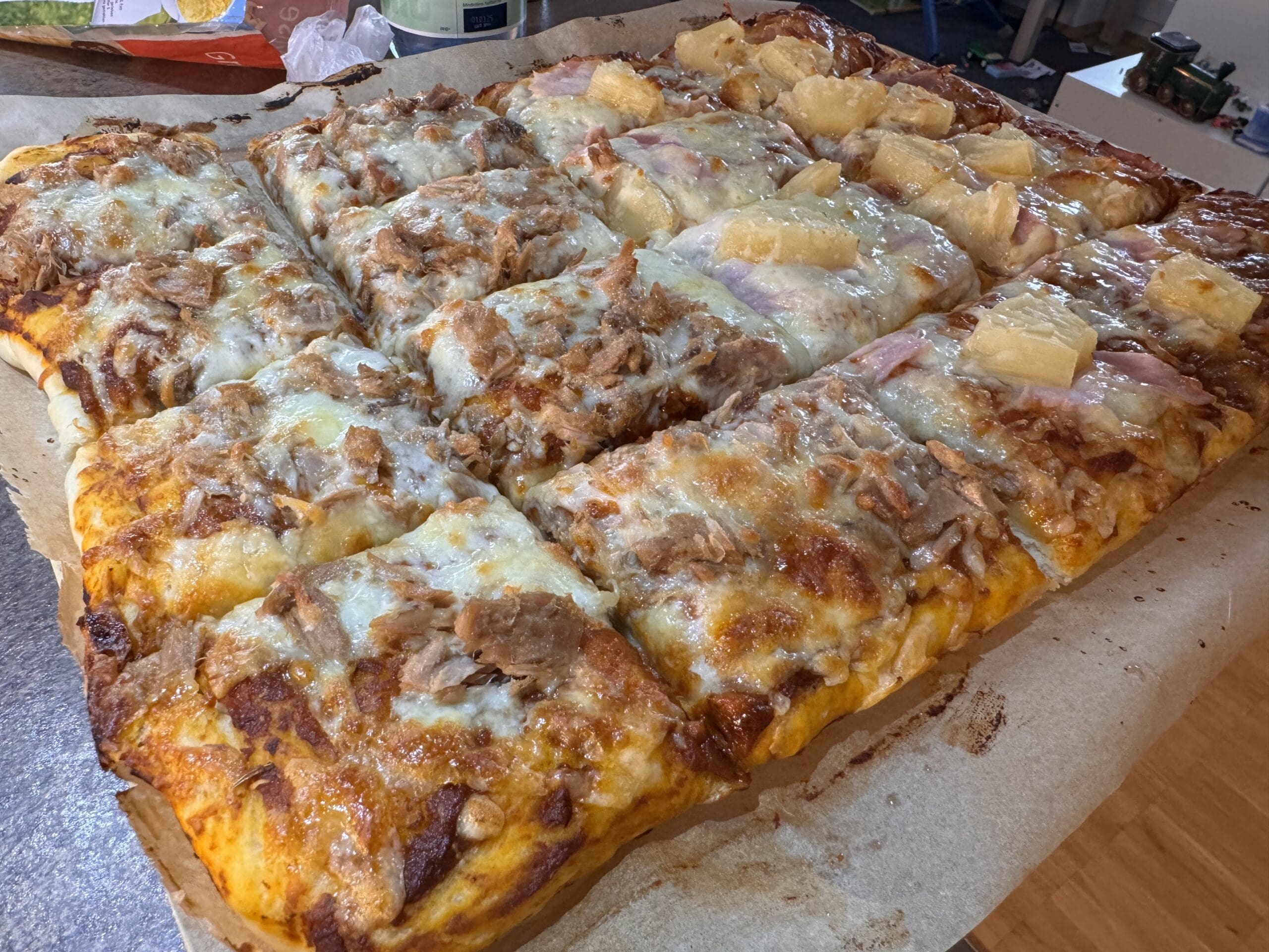 Es gab Pizza Hawaii und Pizza Thunfisch.