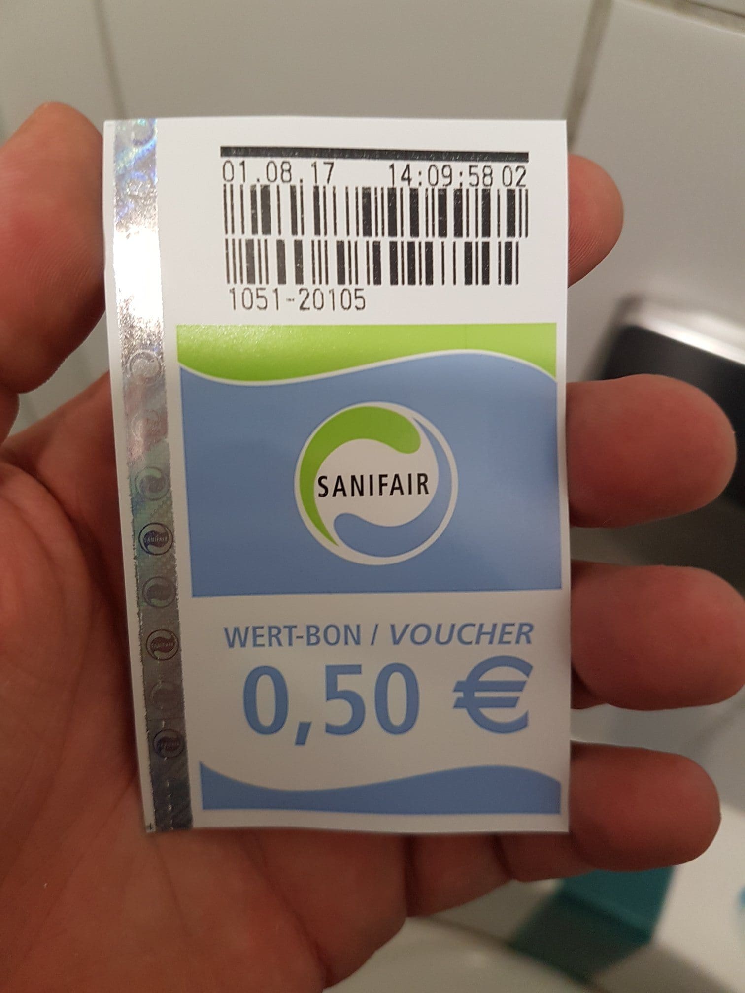 Zum Glück kam dann als nächstes ein Autohof abseits der Autobahn, der keine Sanifair Toilette hatte, sondern eine „normale“ mit einem Putzmann.