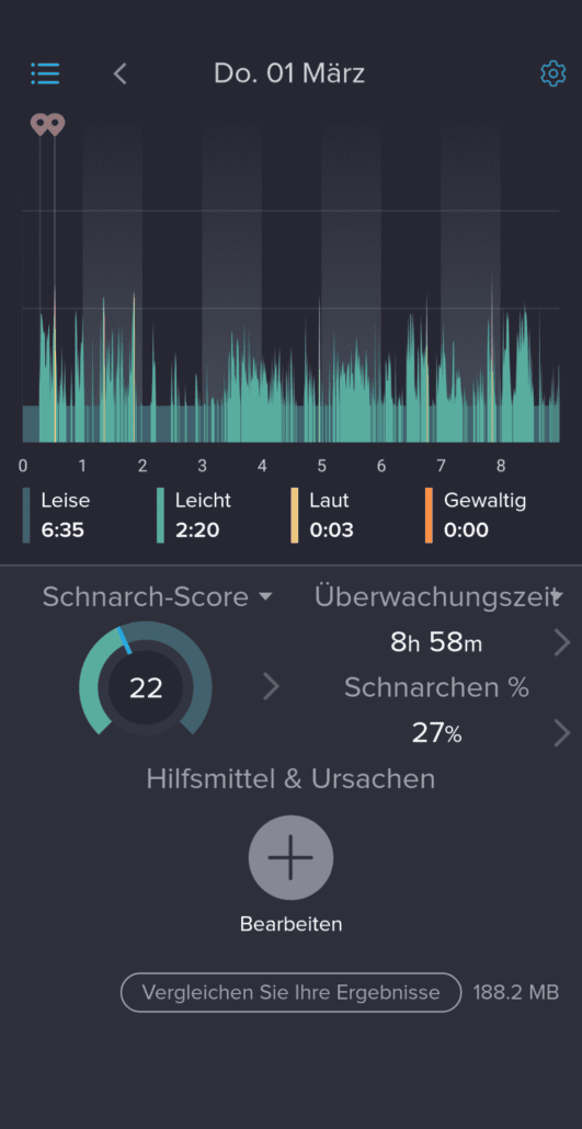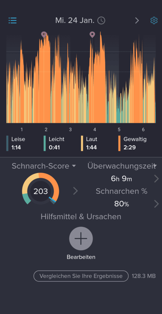 Hier mal eine Aufnahme wo ich es kurz schaffe zu Schnarchen und das Gerät danach mehr Luft gibt .