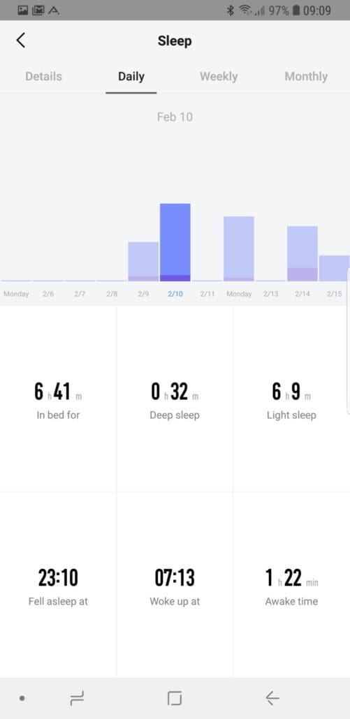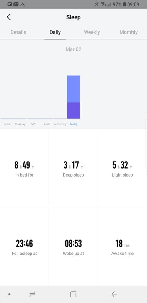 Bedeutet, ich habe maximal rund 30 Minuten Tiefschlaf gehabt und habe mich 1h20m bewegt.