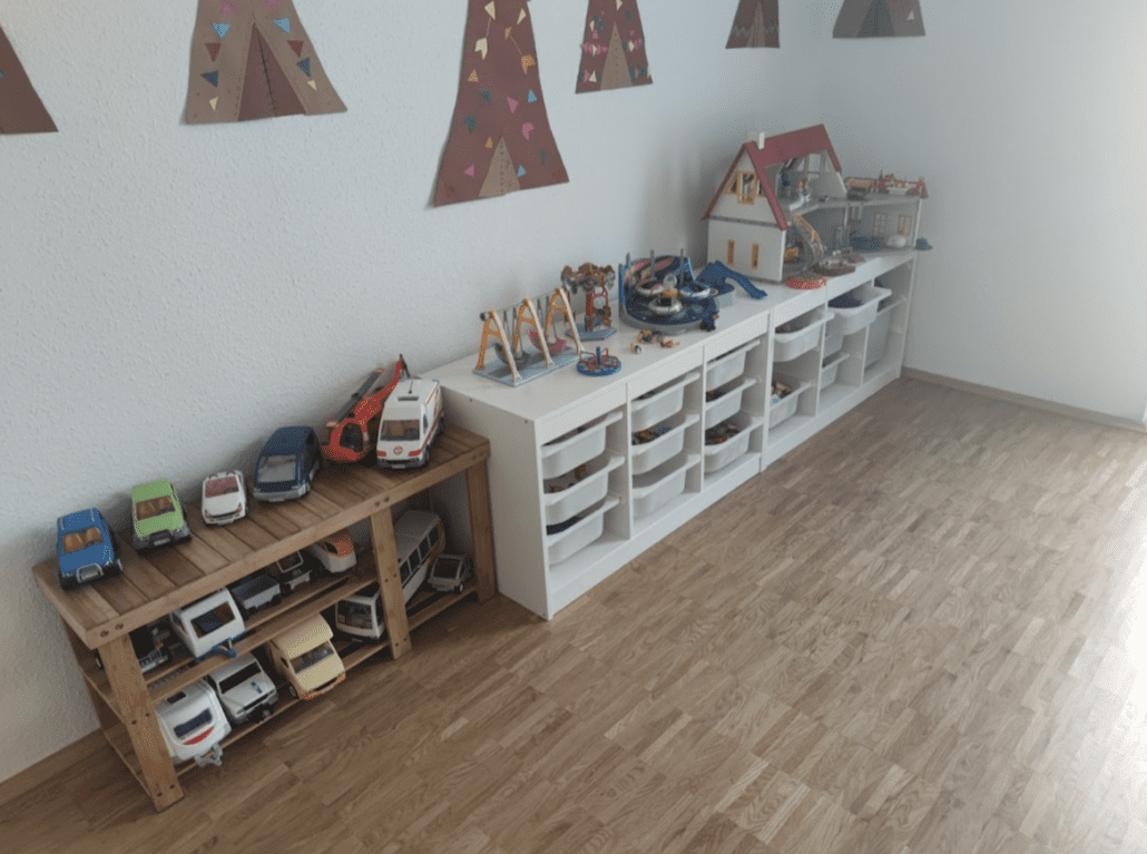 Sie nutzen entweder die Spielecke bei uns im Wohnbereich, ihr Spielzimmer oder einfach die ganze Wohnung ;).
