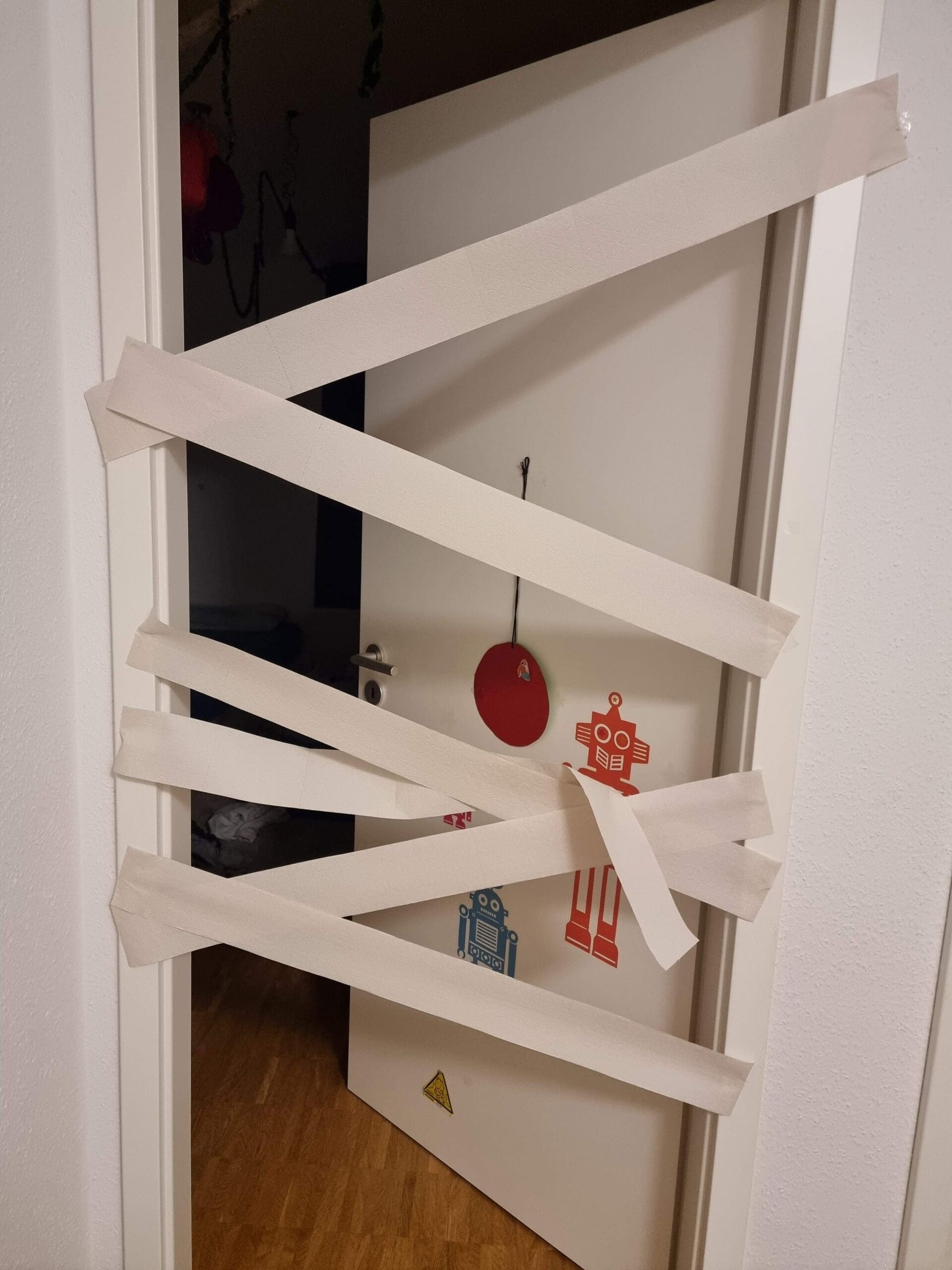 Dafür hat er diese Nacht wieder zugeschlagen und Gesichter auf die Spiegel gemalt hinter die man sich stellen kann.