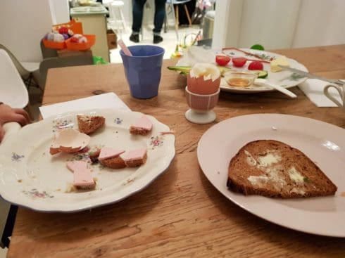 Samstag durfte ich ausschlafen (bis 11 Uhr 😉 und Sonntag meine Frau. Da die Sonne lockte und Sonntag morgens das „Fräulein Frida“ auf hat – ging es nach draußen und frühstücken mit meiner Tochter.