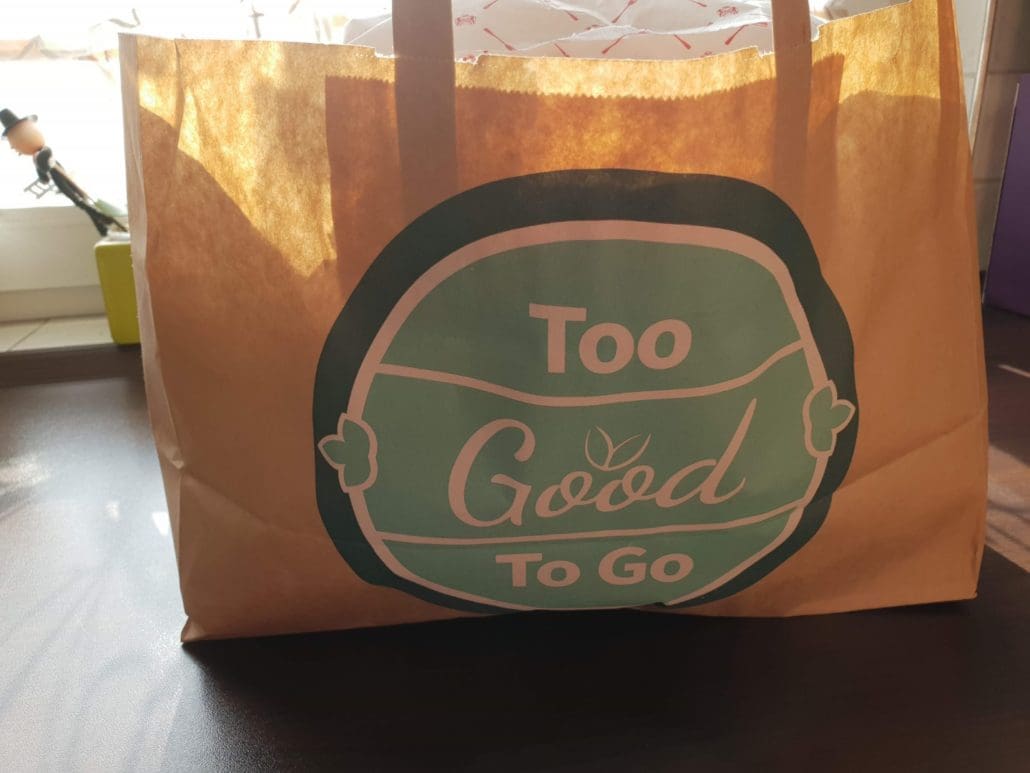 Sie öffnete eine Papiertüte von Too Good To Go und fing an alles mögliche in die Tüte zu packen.