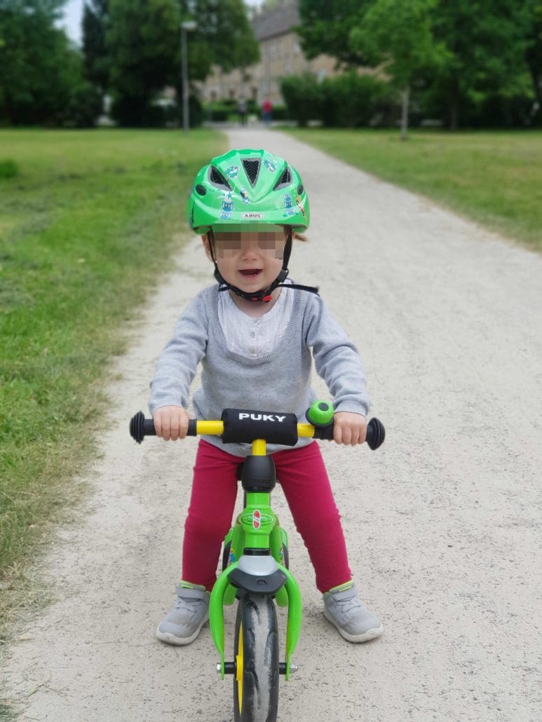 Zu erst sind wir auswärts frühstücken gegangen. Danach ging es mit Ihrem Laufrad in den Park.