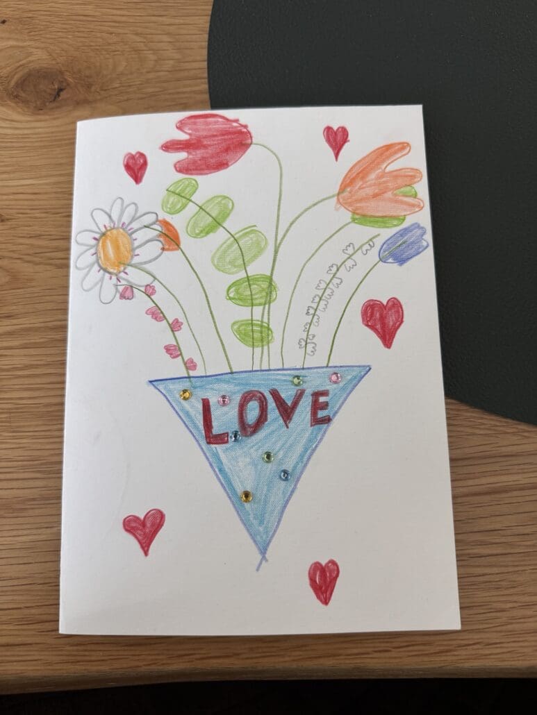 Von meinen Kindern habe ich etwas Gebasteltes erhalten.