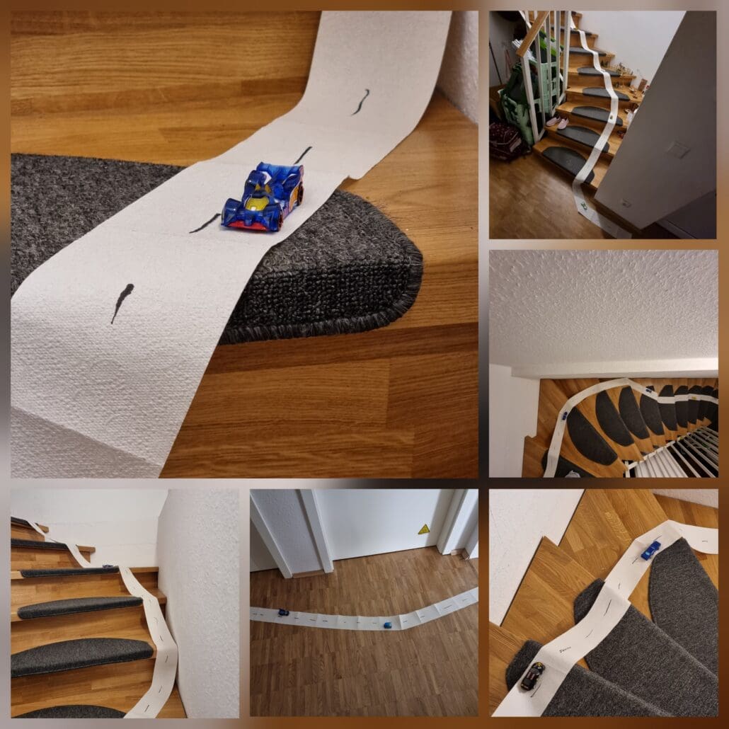Es waren Edelsteine drin. Und einen Schabernack hat er sich auch ausgedacht. Darüber hat sich unser Sohn sehr gefreut. Er hat eine große Rennstrecke aus Klopapier gebaut.